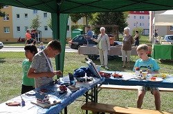 VWG - Mieterfest in Arnstadt06. September 2019 Die Vereinigte Wohnungsgenossenschaft Arnstadt von 1954 e.G. ist eine eingetragene Genossenschaft mit ca. 3800 Mitgliedern und 3700 Wohnungen in und um Arnstadt. Wie inzwischen in jedem Jahr wurden wir von der VWG eingeladen, um mit den Kindern zu basteln. Die VWG ist einer unserer Hauptsponsoren für unsere Modellbautage im Mai jeden Jahres. Aber nicht nur deshalb haben wir gerne die Einladung angenommen und sind in diesem Jahr nach Ichtershausen gefahren.