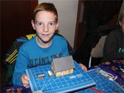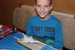 Gesagt, getan; zuerst wurde die Markierung auf das graue Holzbrettchen gezeichnet. Anschließend neben der Rollbahn etwas Rasen gepflanzt und fertig war das Exponat und konnte präsentiert werden. Weil das so viel Spass gemacht hatte,