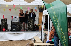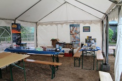 Aber das ist für mich eigentlich egal. In dem Eckchen im Partyzelt waren wir pünktlich zur Eröffnung fertig mit unserem Aufbau und haben den Worte der Vorsitzenden des Vorstandes und der Ansprache des Vorsitzende des Verbandes der KGA`s in Arnstadt an die Organisatoren zugehört.