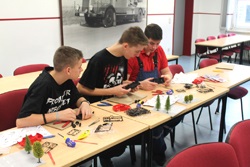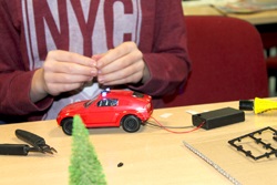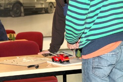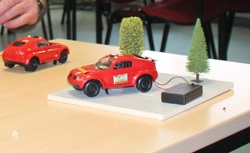 Während die Einen noch damit beschäftigt waren, die Bäume auf die Brettchen zu kleben, haben die Anderen bereits begonnen, die Autos zu bauen.