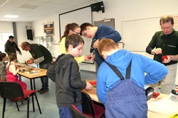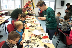 Wegen der nun schon jahrelangen Erfahrung im Modellbau waren alle Kinder mit Begeisterung bei der Sache. Die Großen haben sehr selbstständig gearbeitet und wenn die Kleineren mal nicht weiter gekommen sind, schauten sie einfach in die Bauanleitung.
