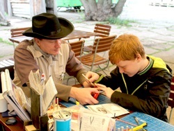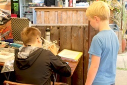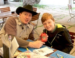 In der 9. Saison lautete das Motto: MAIS WILD WEST. Deshalb bin ich als Sheriff ins Maisfeld gegangen. Gleich nachdem ich die Bastelstrasse aufgebaut habe, kamen auch schon die ersten Kinder zum Modellbau!
