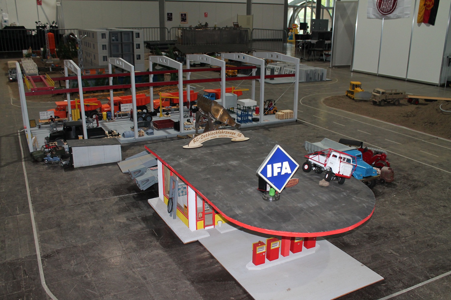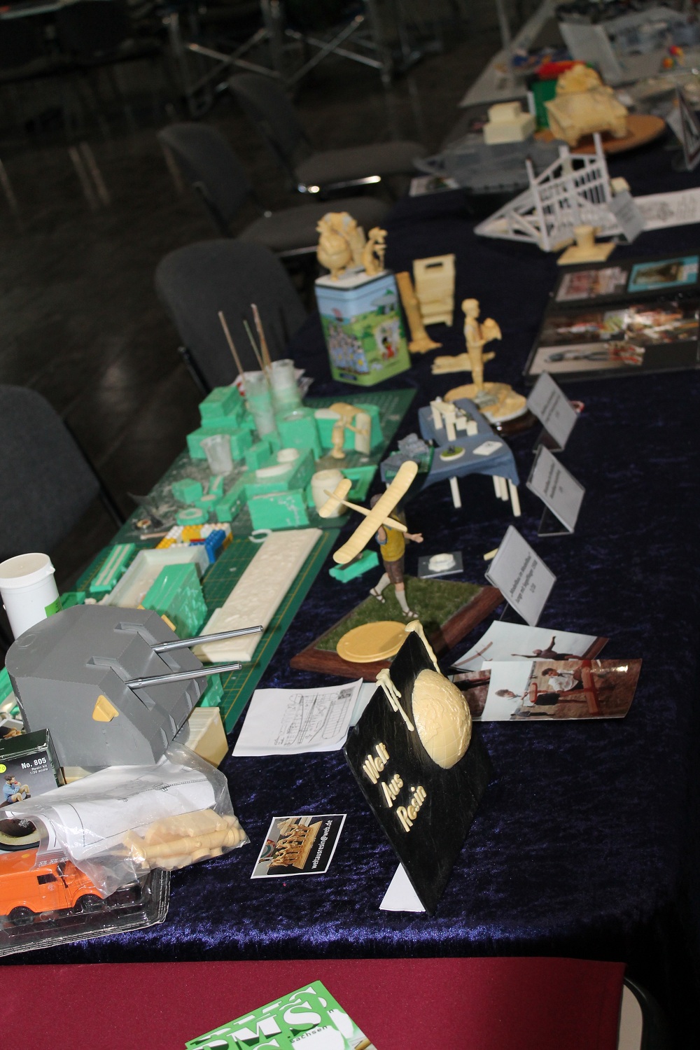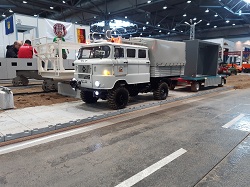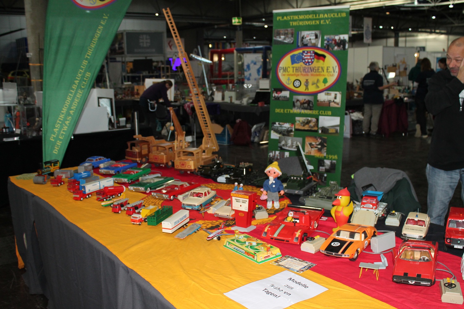 Resin-Bau und die Modelle vom Gerd Bode waren bei uns zu bestaunen, ebenso die Segelschiffe vom Giesbert Kords. Was nur in Leipzig oder überhaupt im Osten geht ist die Präsentation ferngesteuerter und anderer Modellautos aus DDR-Produktion. So hat Holger Engelhardt 30 Exponate aus seiner Kindheit vorgestellt. Als ich das am Donnerstag erfahren habe, habe ich noch ein Modell des ferngesteuerten Lada mitgebracht.
