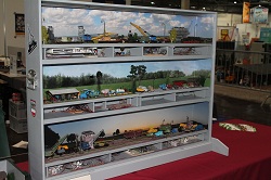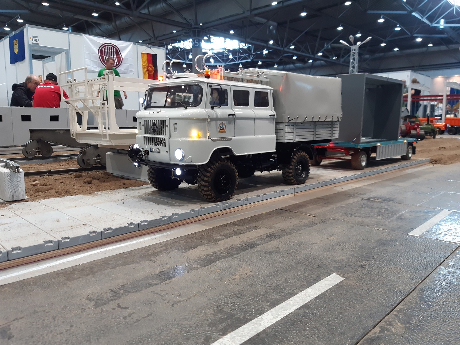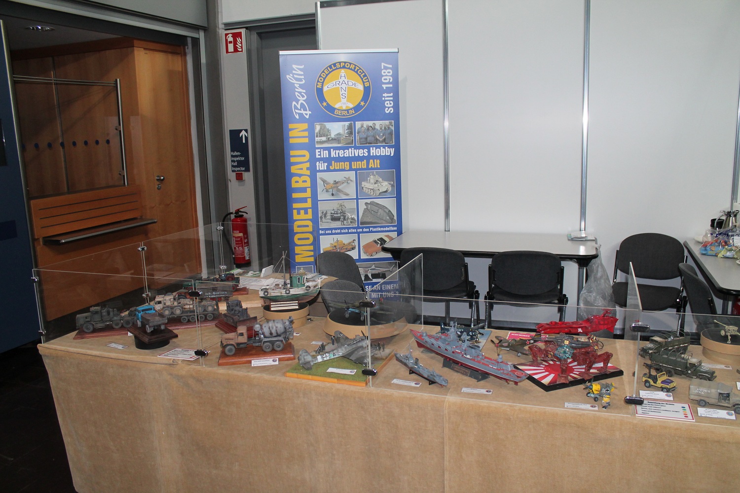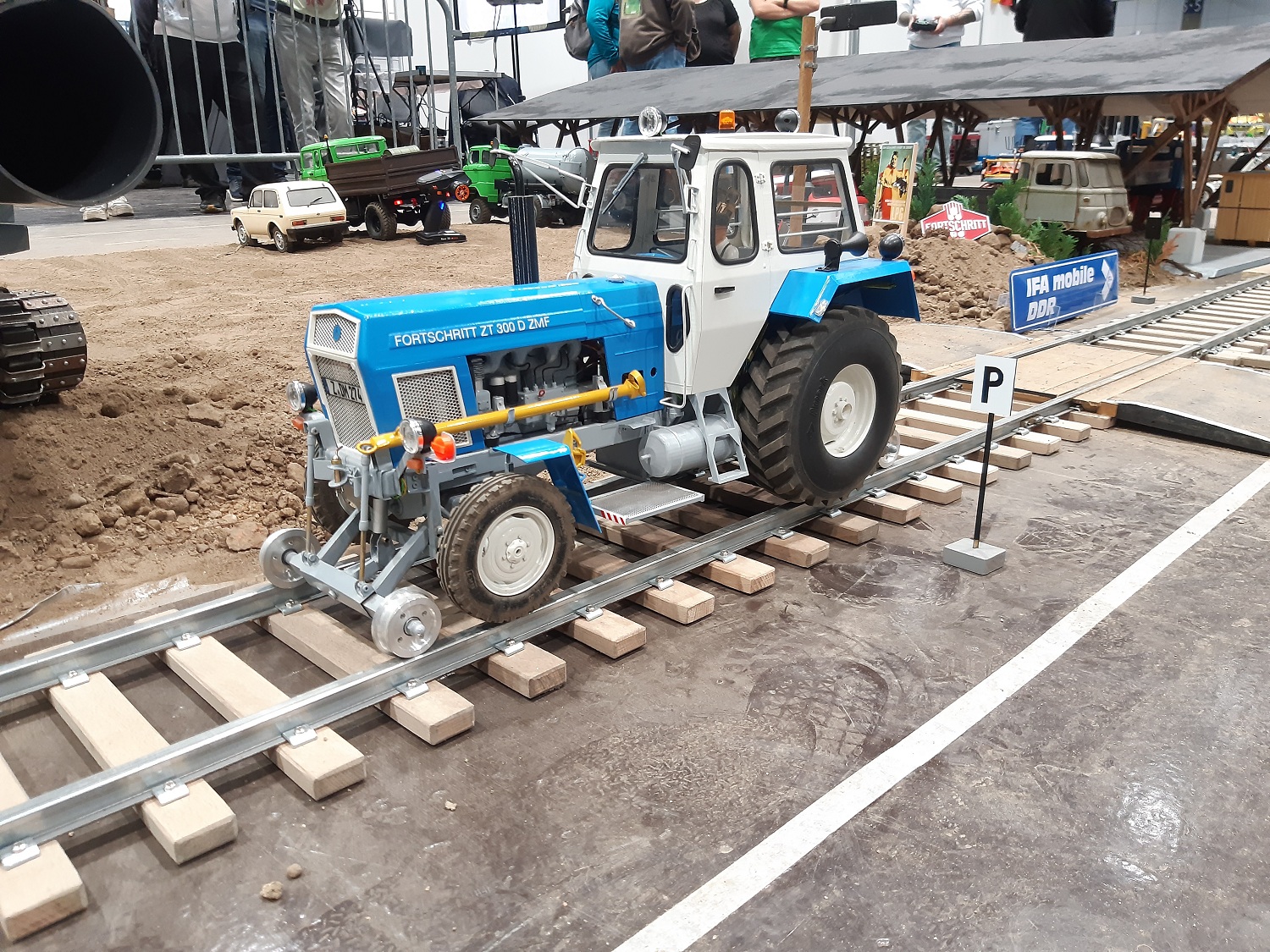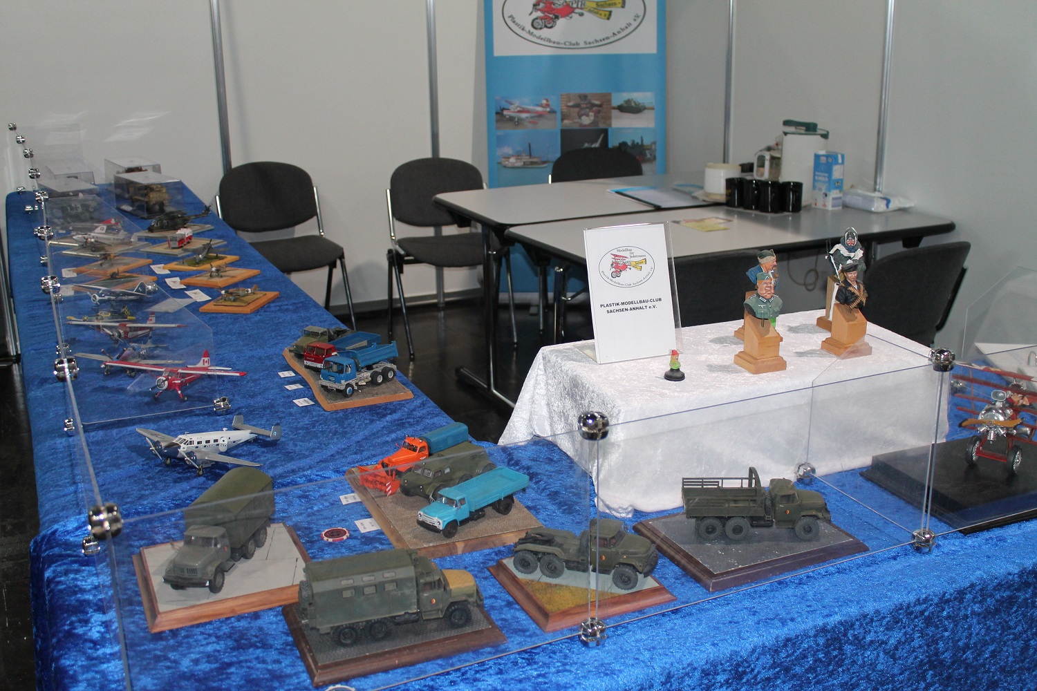 Resin-Bau und die Modelle vom Gerd Bode waren bei uns zu bestaunen, ebenso die Segelschiffe vom Giesbert Kords. Was nur in Leipzig oder überhaupt im Osten geht ist die Präsentation ferngesteuerter und anderer Modellautos aus DDR-Produktion. So hat Holger Engelhardt 30 Exponate aus seiner Kindheit vorgestellt. Als ich das am Donnerstag erfahren habe, habe ich noch ein Modell des ferngesteuerten Lada mitgebracht.