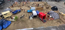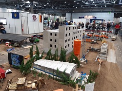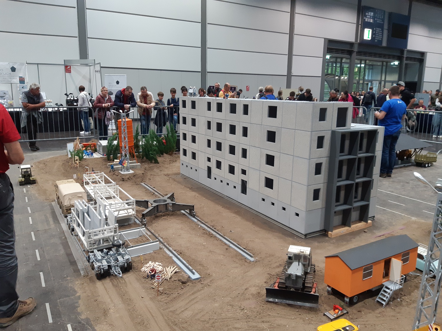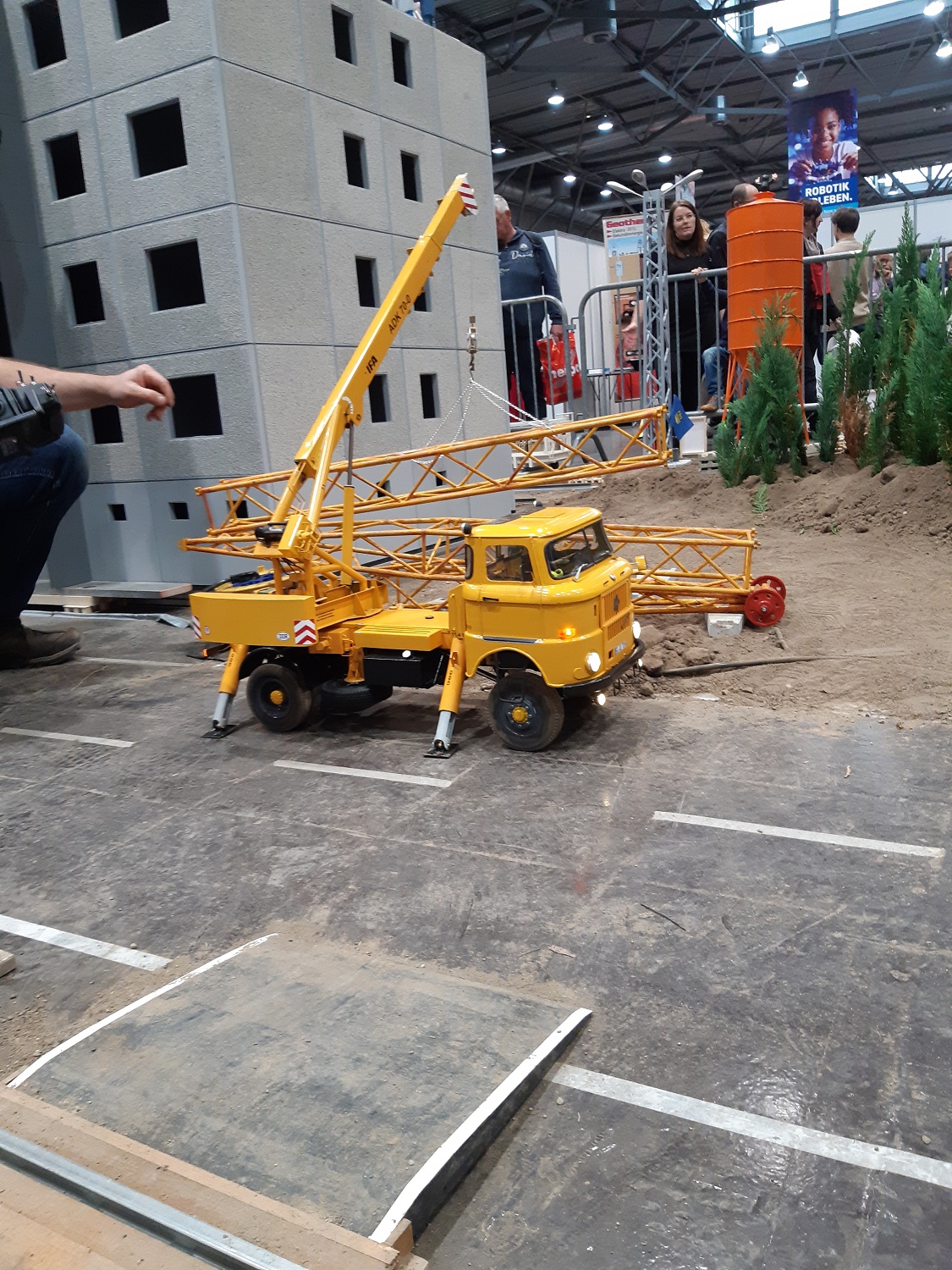 Mit ferngesteuerten Fahrzeugen aus der DDR-Zeit kamen die Fertigbetonteile und es entstand ein Wohnblock mit 4 Etagen.