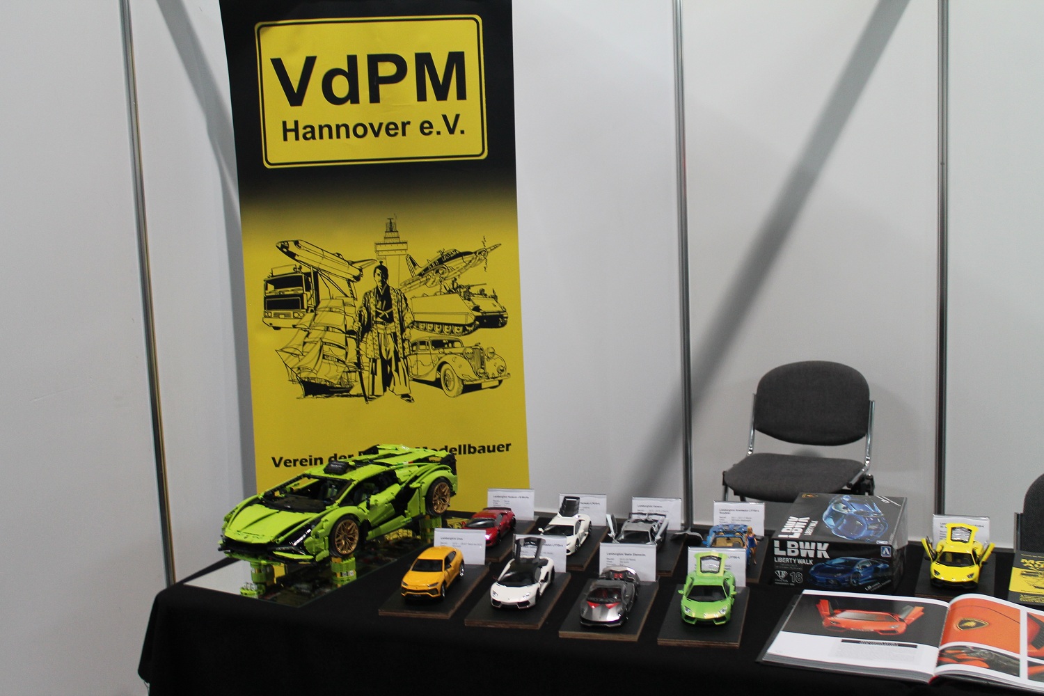 Resin-Bau und die Modelle vom Gerd Bode waren bei uns zu bestaunen, ebenso die Segelschiffe vom Giesbert Kords. Was nur in Leipzig oder überhaupt im Osten geht ist die Präsentation ferngesteuerter und anderer Modellautos aus DDR-Produktion. So hat Holger Engelhardt 30 Exponate aus seiner Kindheit vorgestellt. Als ich das am Donnerstag erfahren habe, habe ich noch ein Modell des ferngesteuerten Lada mitgebracht.