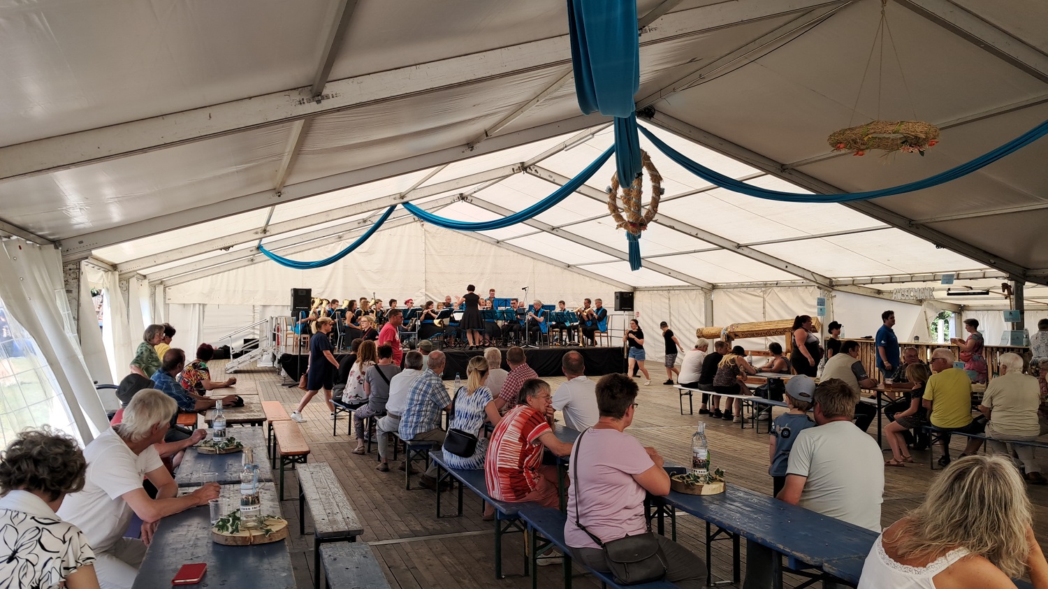 Vorne spielte die Musik. Die Blaskapelle spielte bekannte Lieder, aber auch neu einstudiertes.