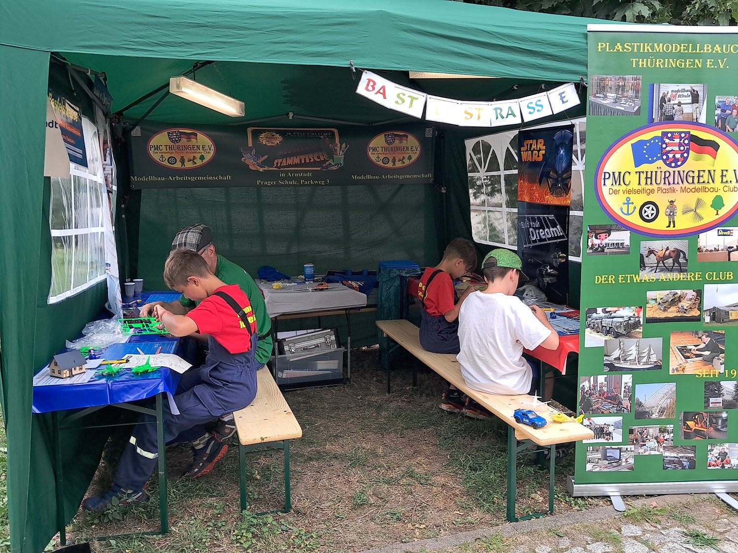 Eines Tages fragte mich Benni, ob wir nicht da mit dabei sein wollen. Und da wir ja schon einmal beim Parkfest in Ichtershausen und später bei der Freiwilligen Feuerwehr mit unserer Bastelstrasse mitgemacht haben, habe ich dazu nicht nein gesagt.