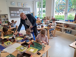 Unter Beachtung der schulischen Auflagen hat dann jedes Kind "sein" Häuschen gebaut. Jedes Diorama ist ja einzigartig, da hat das Haus eine andere Farbe oder ein anderes Auto steht davor, oder, oder...