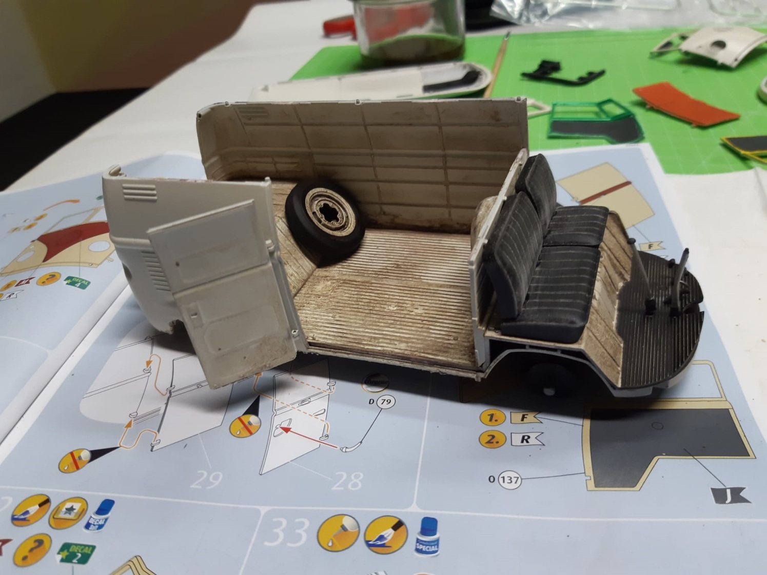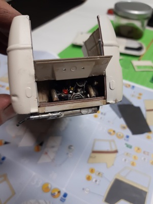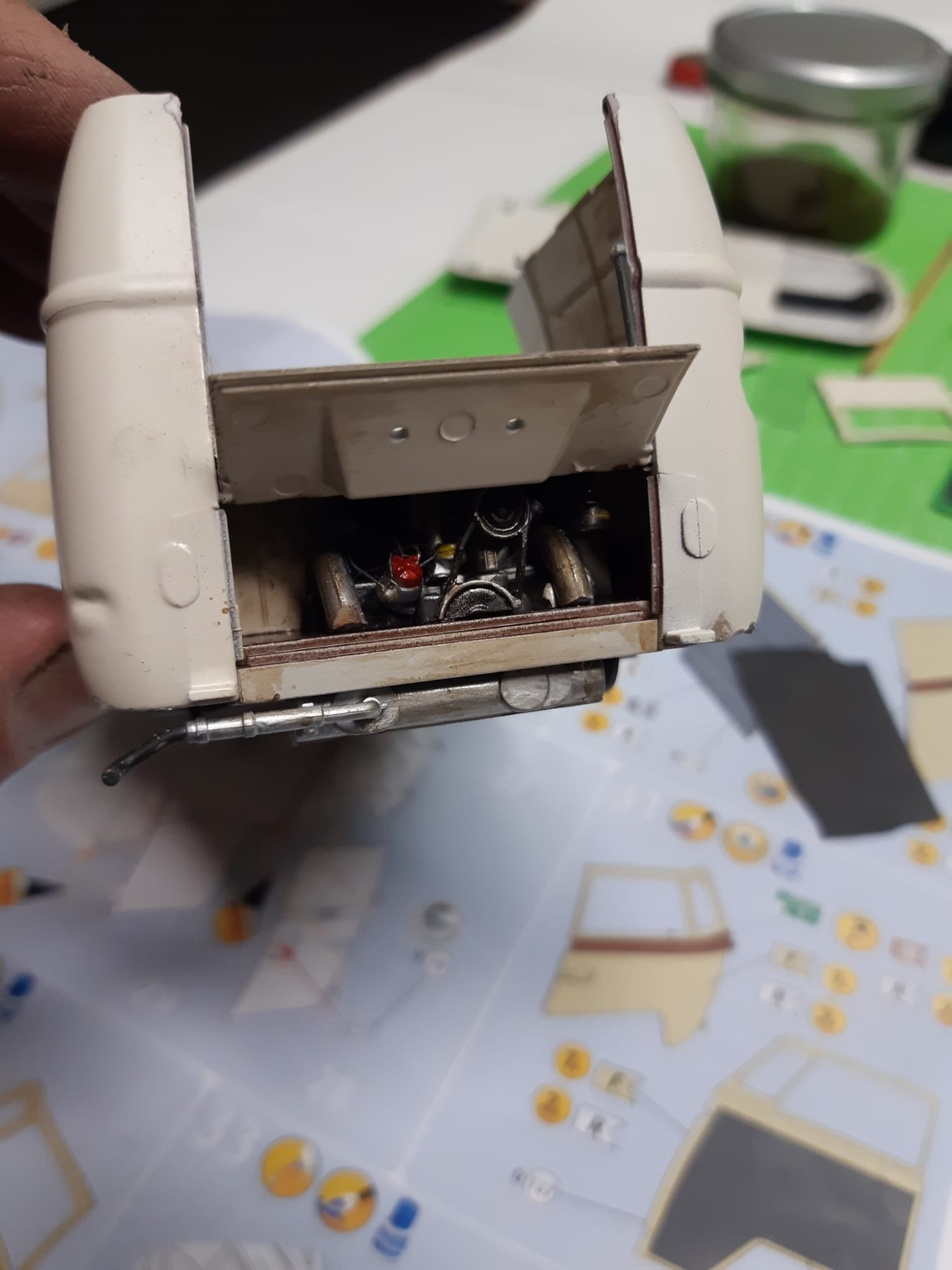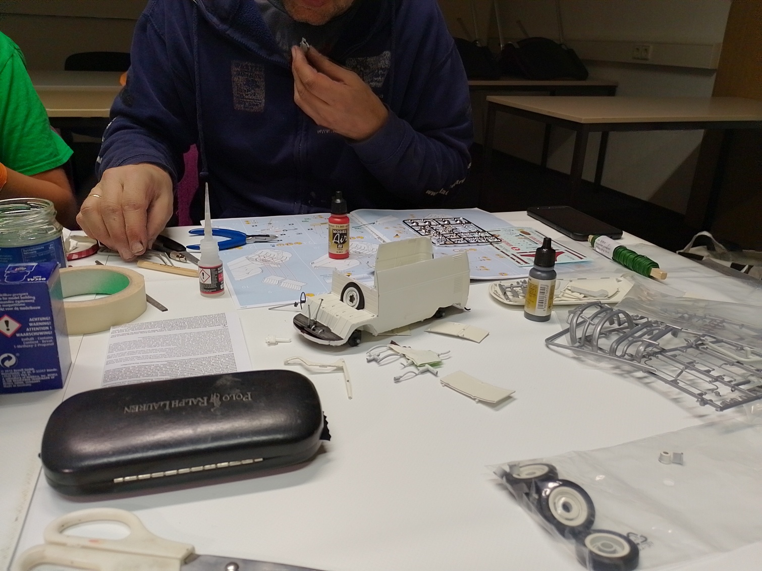 Dieser VW-Bus T1 ist im Modell etwas in die Jahre gekommen. Dieser VW T1 Marken-Werbebulli ist bei Revell unter der Bestell-Nr.: 67677 zu bekommen. Originalfarben sind im Set mit dabei. In unserer AG wurde auf die Farben weitgehendst verzichtet und das Fahrzeug gealtert. Es entstand ein sehr realistisches Modell, welches sicherlich hier und da noch im Hinterhof rumstehen dürfte.